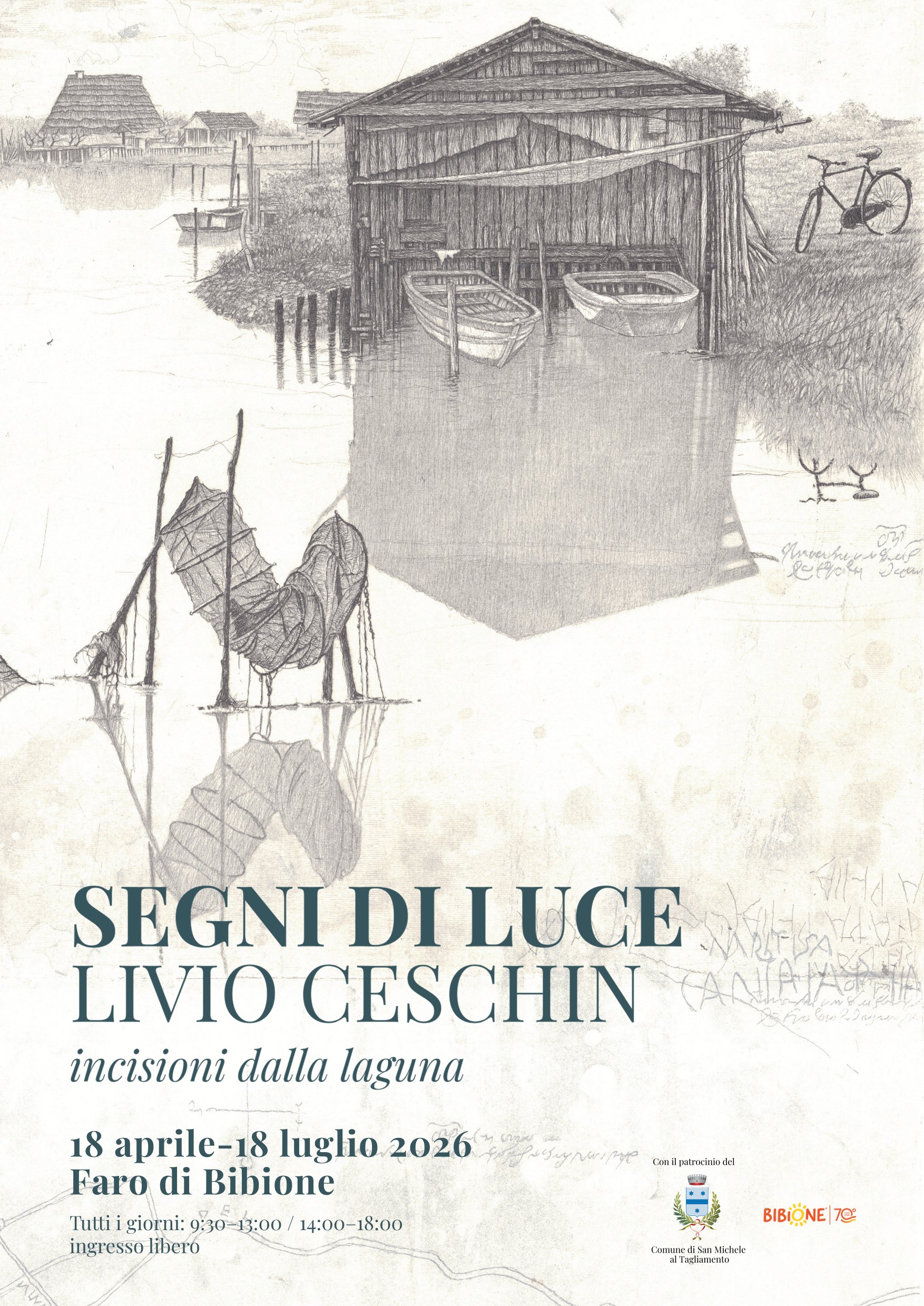 Dal 18 aprile al 18 luglio 2026 il Faro di Bibione ospita la mostra “Livio Ceschin – Segni di Luce. Incisioni dalla Laguna”, un’esposizione dedicata al lavoro dell’incisore nato a Pieve di Soligo nel 1962.